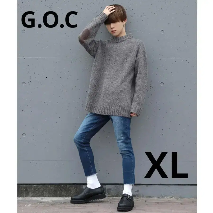 G.O.C. 차콜 그레이 터틀넥 니트 XL 엘보우 패치