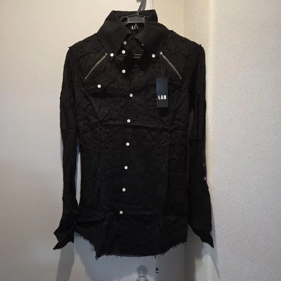 L.G.B. 블랙 긴팔 셔츠 지퍼 디자인