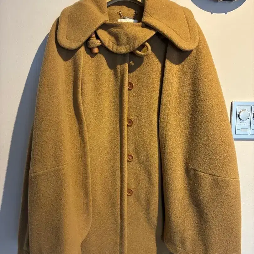 자동 번역되었어요. 원문보기울 소재의 베이지 판초 케이프 코트,