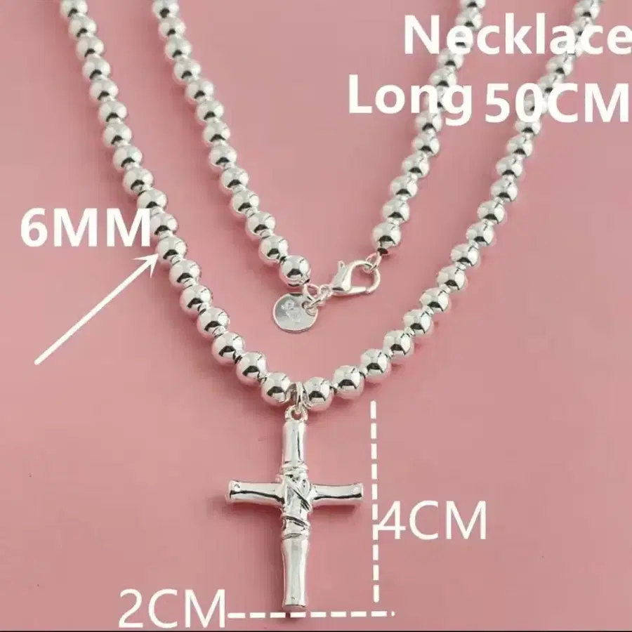 925 50cm 볼 체인 크로스 목걸이 로사리오 십자가
