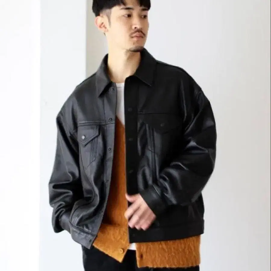 • BEAMS 와이드 숏 핏 시어링 가죽 자켓