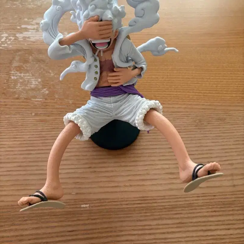 원피스 캐릭터가 떠 있는 피규어, 구름 같은 헤어스타일과 블랙 베이스가 특징.