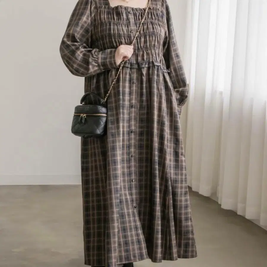 부티크 오디너리 롱 원피스 도킹 체크 오버 사이즈