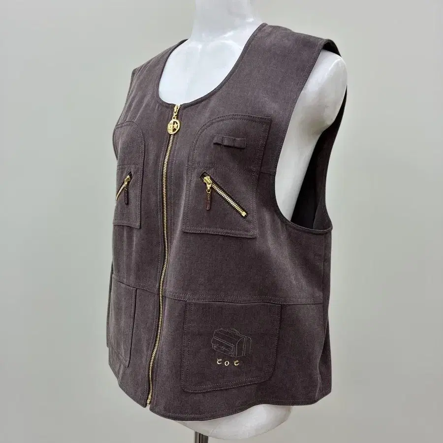 텐셀이라는 부드러운 원단의 브라운~그레이 색상의 지퍼 베스트. - 색상: 브라운 - 디자인: 지퍼 베스트 등의 자수와 큰 포켓이 특징입니다. 새상품 구매 후, 미사용 상태로 보관했습니다. 토르소 마네킹의 사이즈는 9호입니다. 표기 사이즈: 9 평평하게 놓았을 때 실측 사이즈 어깨 너비 (어깨~어깨): 36cm 가슴 너비 (겨드랑이~겨드랑이): 46cm 기장 (옷깃 끝~밑단): 50cm 방문해 주셔서 감사합니다.