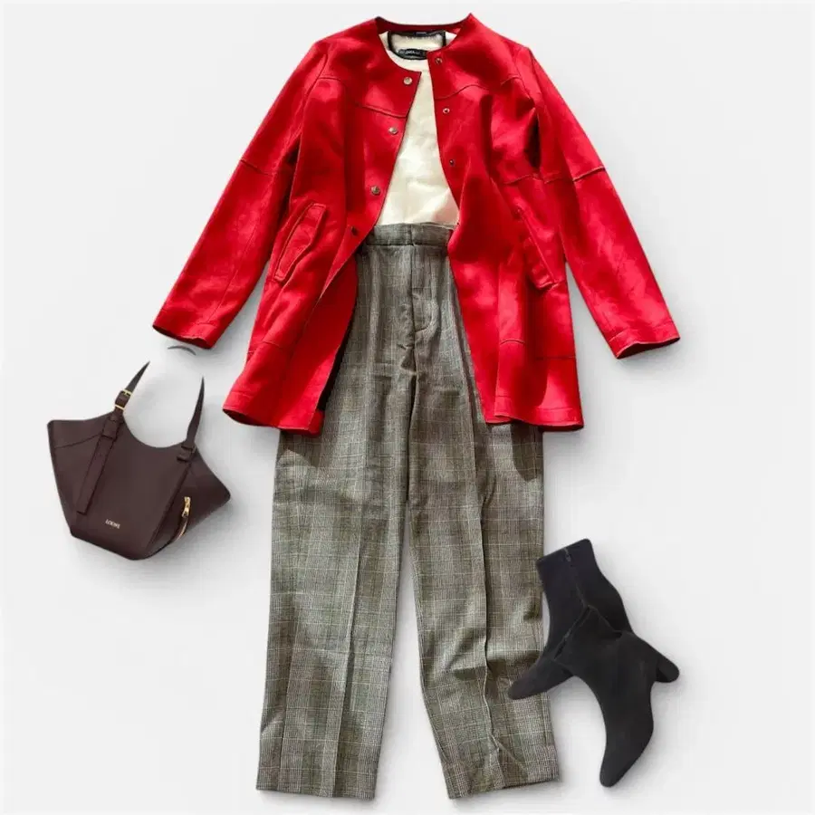 강렬한 임팩트의 멋진 스웨이드 느낌 코트 세트업 코디입니다.