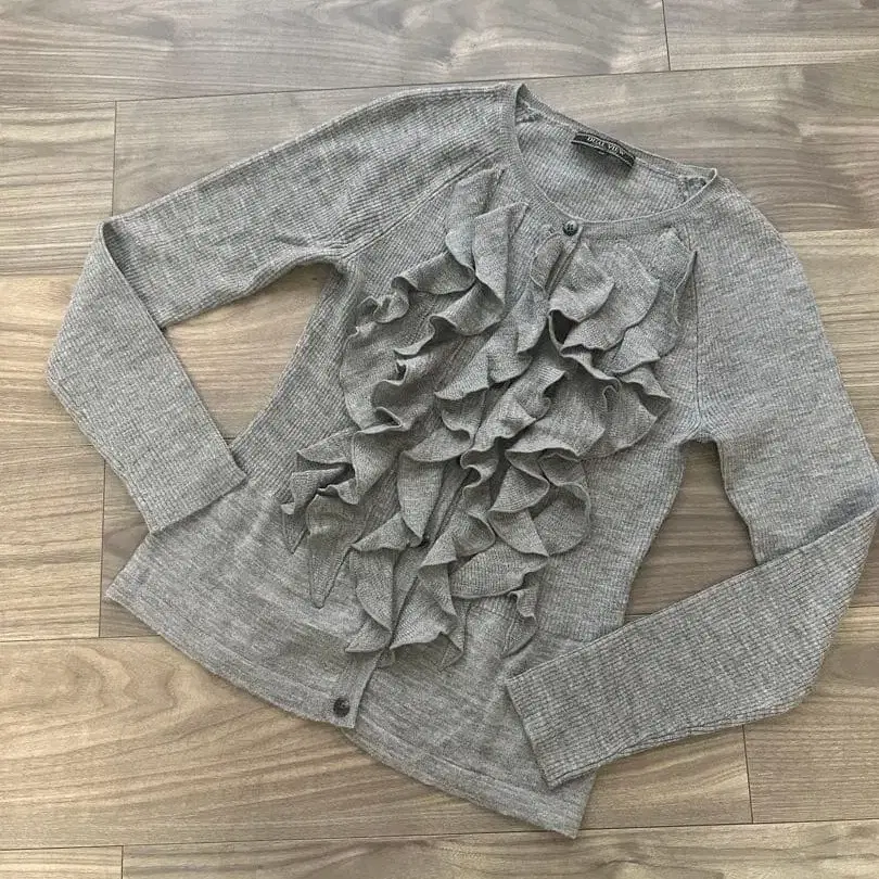 프릴 디자인의 그레이 긴팔 가디건. - 브랜드: Dual View - 사이즈: 40 - 색상: 그레이 - 디자인: 프릴 포함 - 스타일: 가디건 - 소매 길이: 긴팔 방문해 주셔서 감사합니다.