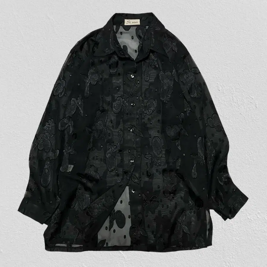 St.river 시어 셔츠 자카드 꽃무늬 자수 빅 루즈 올 패턴 F