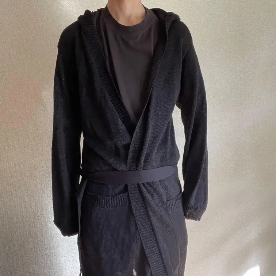 DRIES VAN NOTEN 블랙 후드 부착 가디건
