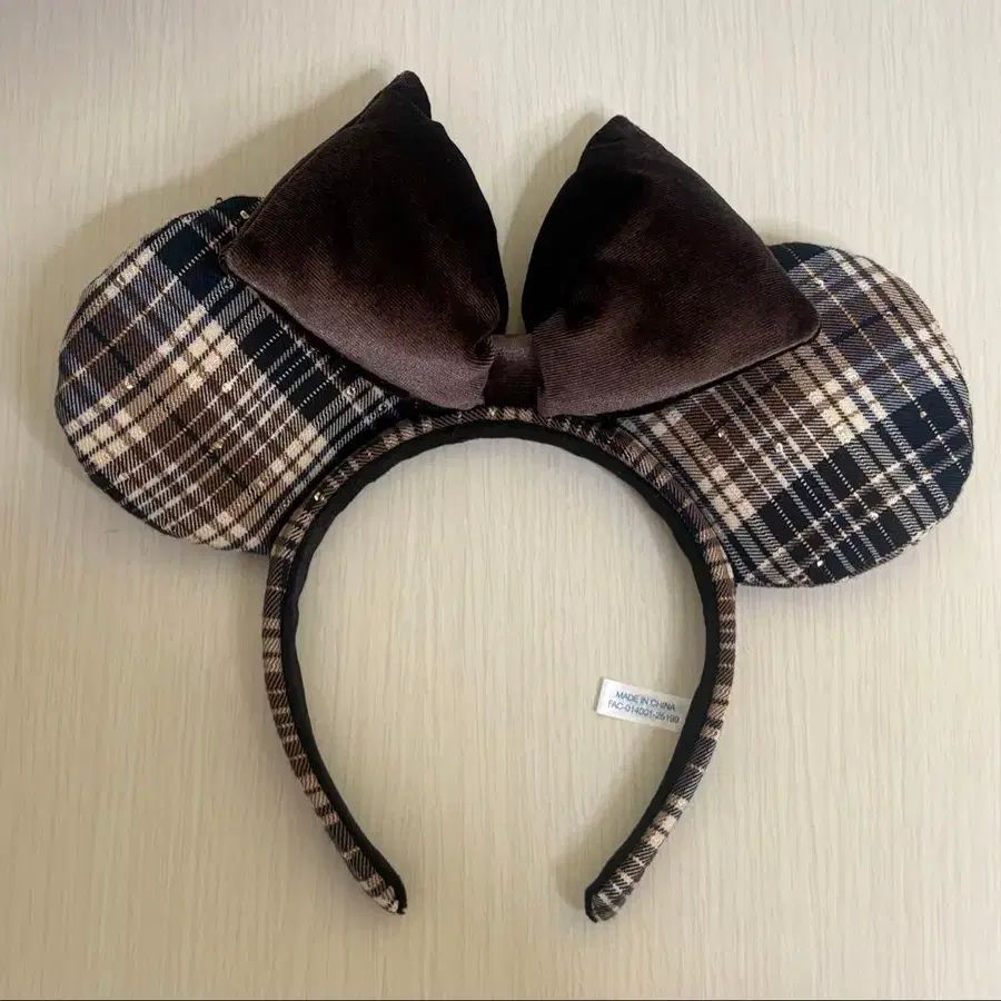 체크 무늬와 브라운 리본의 디즈니 머리띠. 즉시 구매 OK입니다!