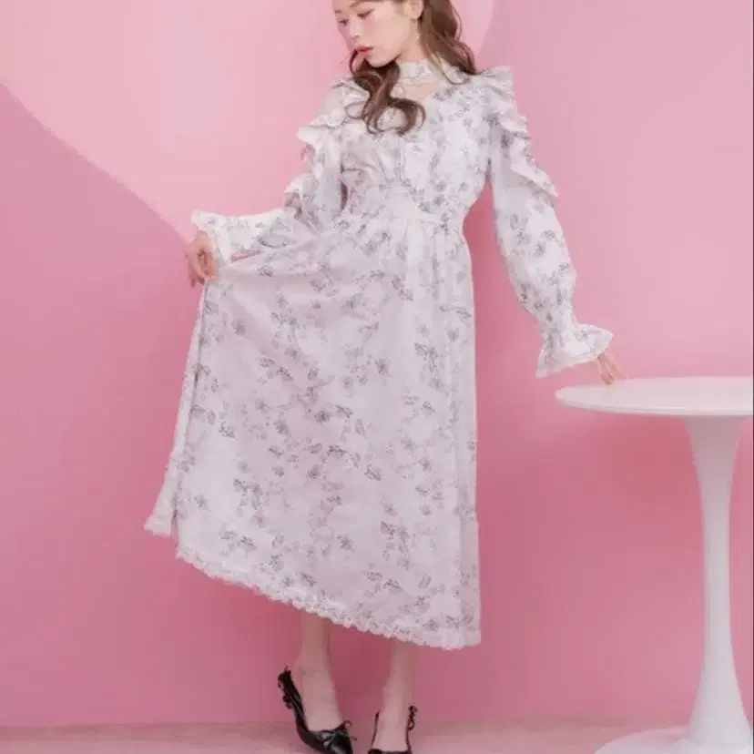 couture by ROJITA 오리지널 로즈 리본 롱 원피스 화이트