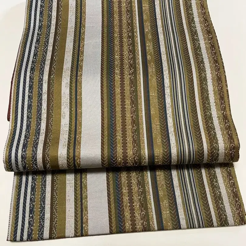화 후쿠로 오비 오타이코 패턴 샤레 오비 꽃 말차 카키