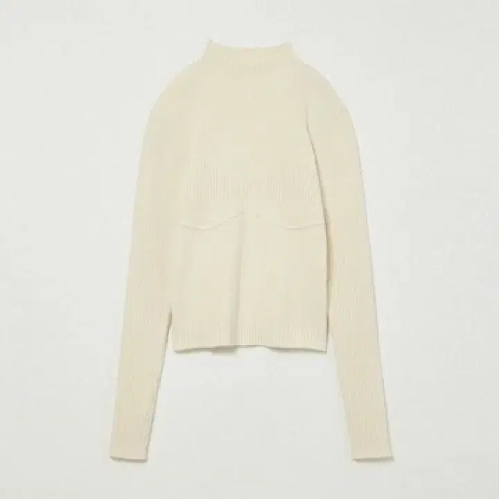 가슴 밑에는 테이프를 덧댄 듯한 라인을 더해, 마치 뷔스티에를 겹쳐 입은 듯한 니트 직물로 입체감을 연출했습니다.