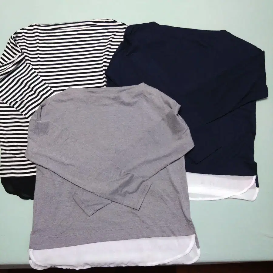 자동 번역되었어요. 원문보기스트라이프와 무지의 레이어드 디자인 긴팔 상의.