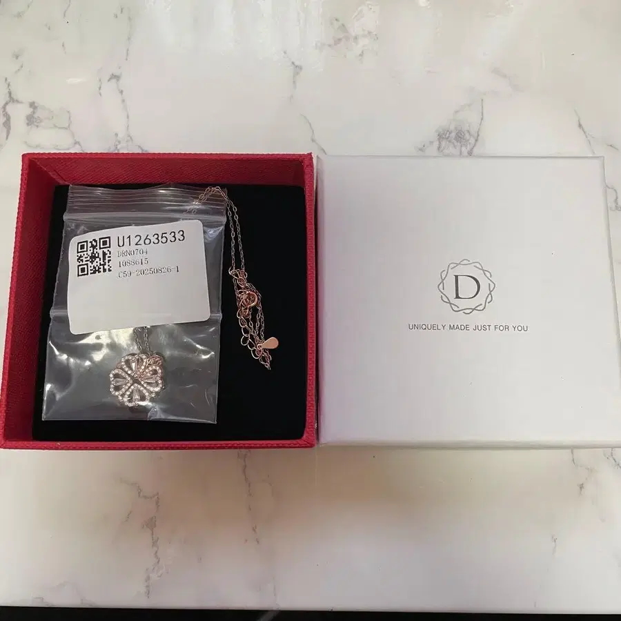 로즈 골드 클로버형 모티브 목걸이, 오리지널 박스 포함.