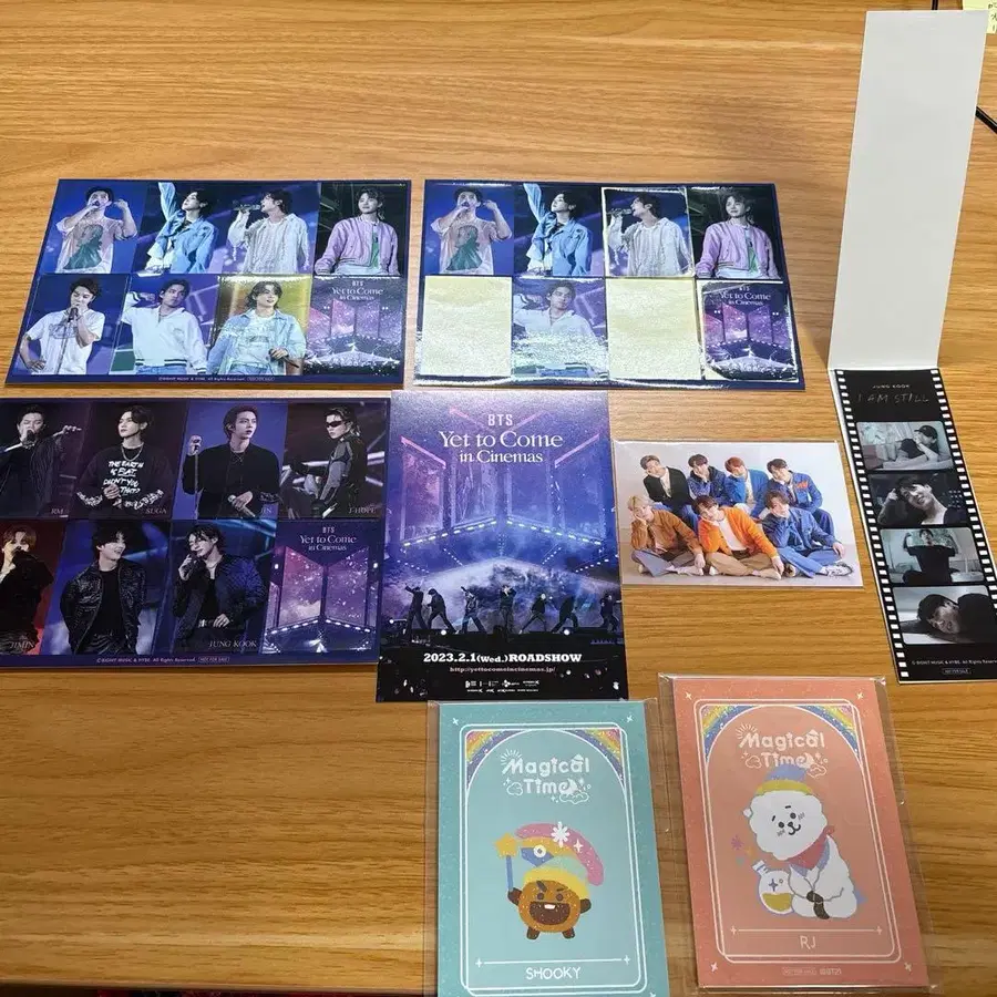 BTS 영화 [ Yet to Come ]의 씰, 엽서 정국 영화 I AM STILL의 책갈피 기간 한정 최애 카페의 미니 메모 세트입니다.