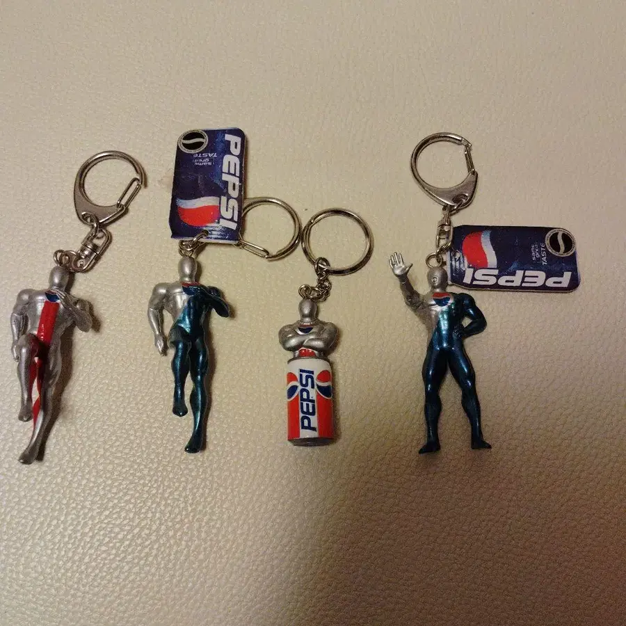 펩시맨과 펩시캔 키링 4개 세트. - 캐릭터: 펩시맨 - 수량: 4개 세트 - 소재: 플라스틱 - 디자인: 펩시캔과 펩시맨 피규어 방문해 주셔서 감사합니다.