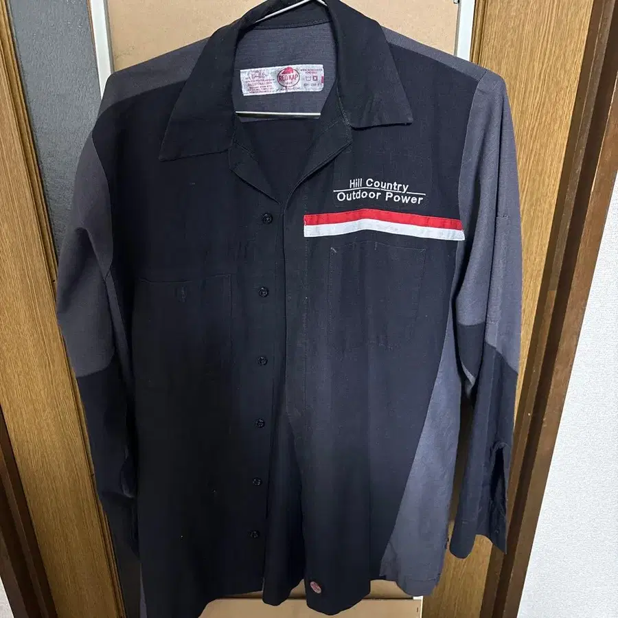 Hill Country Outdoor Power 자수가 들어간 폴리에스테르와 코튼 혼방 소재의 긴팔 셔츠.