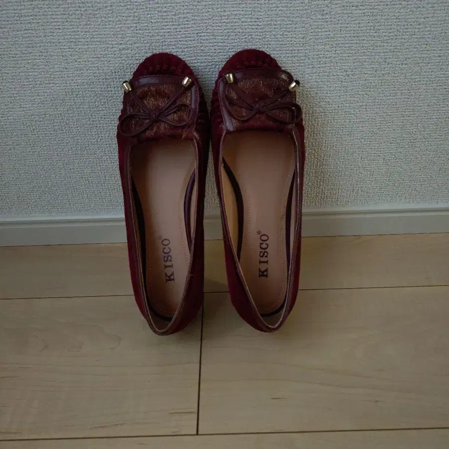 수년 전에 구매하여 당시 몇 번 사용했습니다. 그 이후 계속 보관해 왔습니다. 사용감은 별로 없다고 생각합니다. 개인 보관이므로 신경 쓰이시는 분은 삼가해 주십시오. 버건디 색상의 리본 포함 플랫슈즈, 캐주얼 스타일에 최적입니다. 사이즈 24cm - 브랜드: KISCO - 색상: 버건디 - 디자인: 리본 포함 플랫슈즈