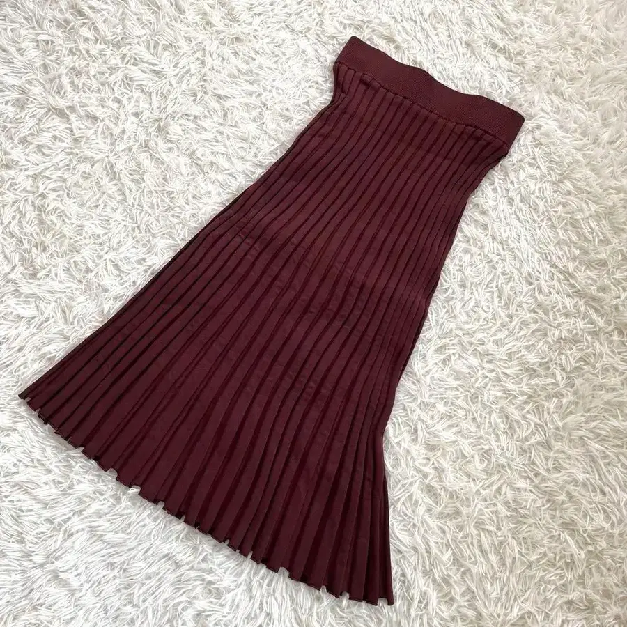 ⇒ [ 미라 오웬 ] 리브 스커트 롱 기장 1 브라운 허리밴딩