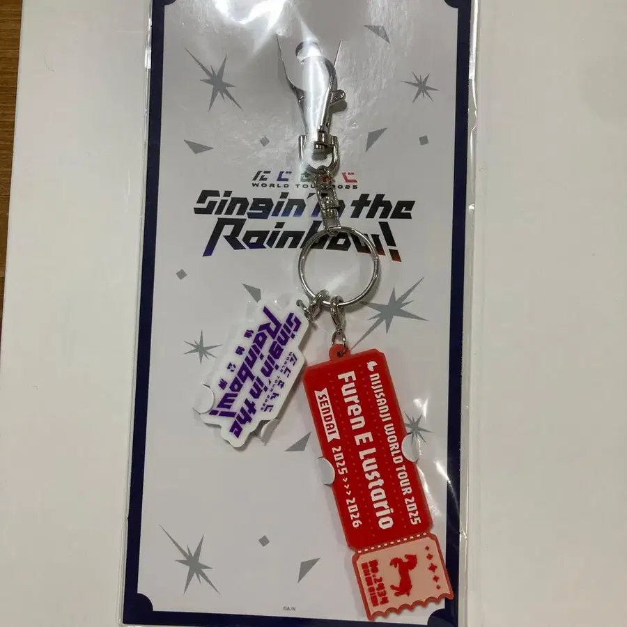티켓 형태의 러버 키링, Sing in the Rainbow 디자인.