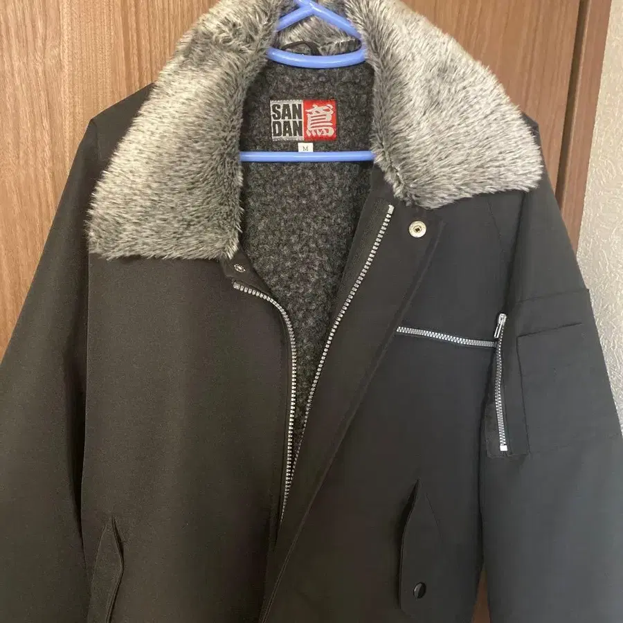 퍼가 달린 옷깃이 특징인 블랙 자켓. - 브랜드: SAN DAN - 사이즈: M - 색상: 블랙 - 특징: 퍼가 달린 옷깃 방문해 주셔서 감사합니다. 사이즈 - M