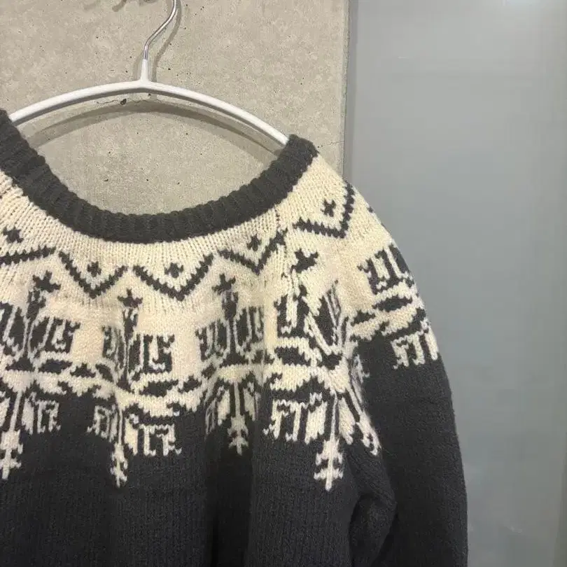 블랙과 화이트의 눈꽃 패턴이 특징인 긴팔 니트 스웨터. - 색상: 블랙과 화이트의 눈꽃 패턴 - 디자인: 크루넥, 긴팔, 니트 - 장식: 밑단에 빨간색과 화이트 패턴 - 소재: 울 또는 아크릴 니트 방문해 주셔서 감사합니다. 사이즈 - L