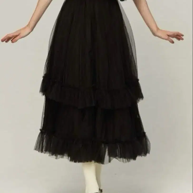 Wcloset 튤 티어드 치마바지 블랙 스커트