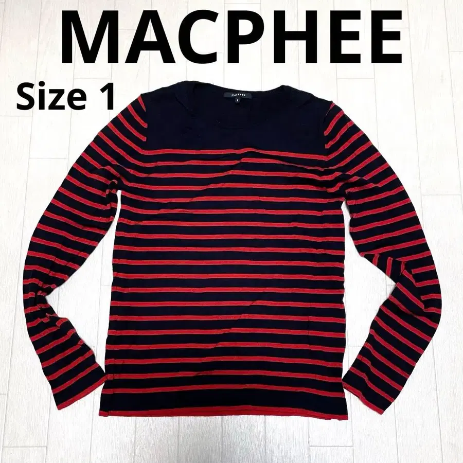 MACPHEE 보더 니트 스웨터 긴팔 울 맥피 네이비