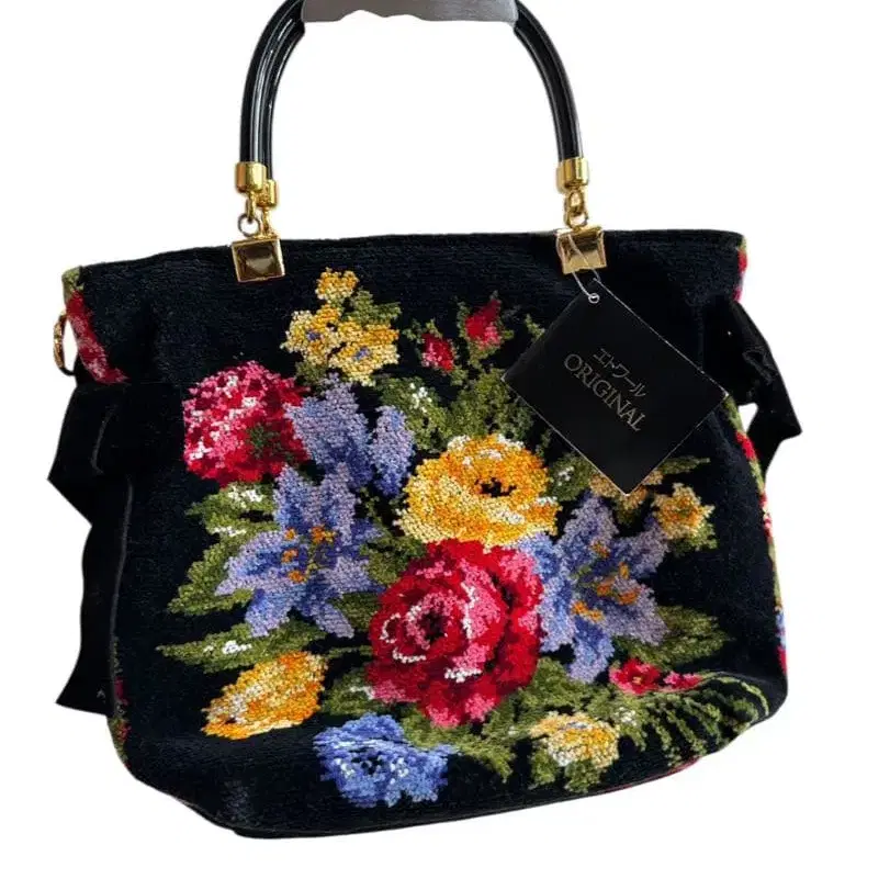 [새상품] 꽃무늬 자수 핸드백 블랙