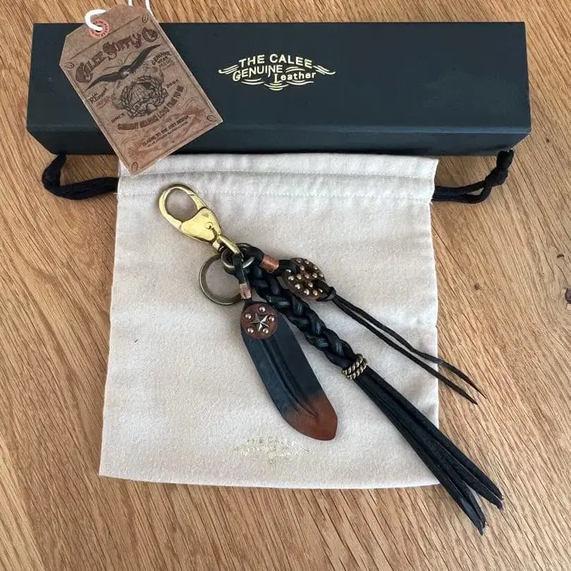 니팅 가죽을 사용하여 제작된 키링입니다. 두 종류의 참이 달린 키링입니다. 두 종류의 참과 링이 달린 사양으로 키링으로는 물론, 참이 스타일의 포인트가 되어줄 것입니다. 또한, 카라비너에는 오리지널 카라비너를 채용하여 세부까지 신경 써서 제작되었습니다.