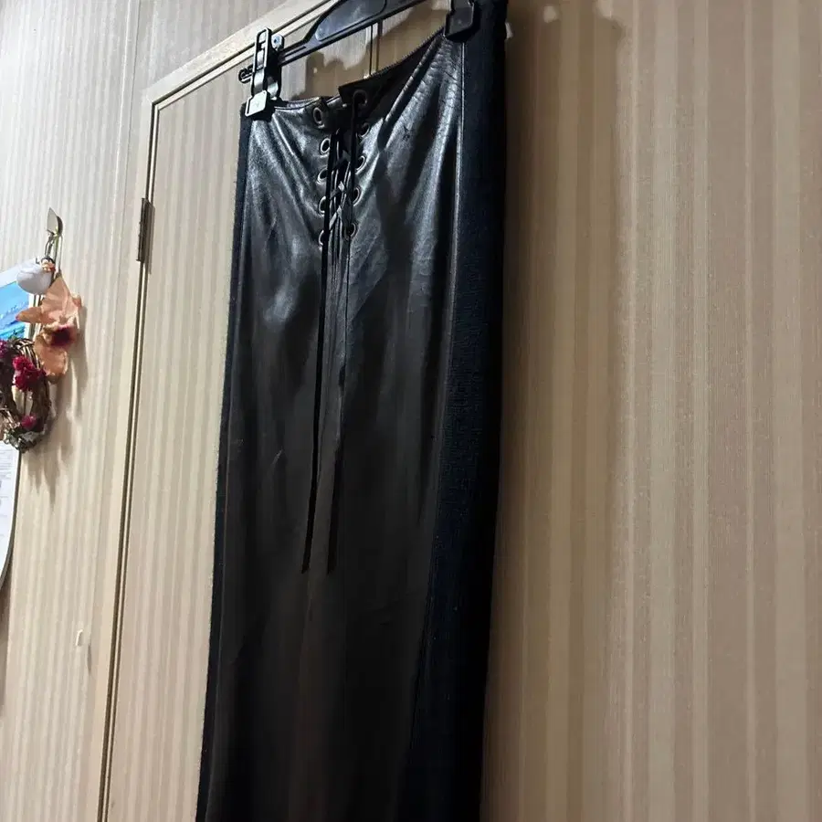 레이스업 디자인의 블랙 타이트 스커트, 합성 피혁 소재. 루스 하우스 - 색상: 블랙 - 디자인: 레이스업 - 스타일: 타이트 스커트 - 소재: 합성 피혁 방문해 주셔서 감사합니다. 사이즈 - M