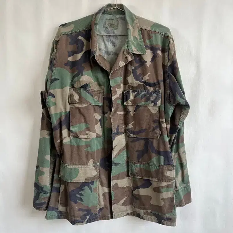 코튼 소재의 카모플라쥬 밀리터리 자켓. - 색상: 카모플라쥬 - 데미지: 왼쪽 가슴 포켓에 작은 찢김 있음 - 사이즈: M - 소재: 코튼 방문해 주셔서 감사합니다. 사이즈 - M