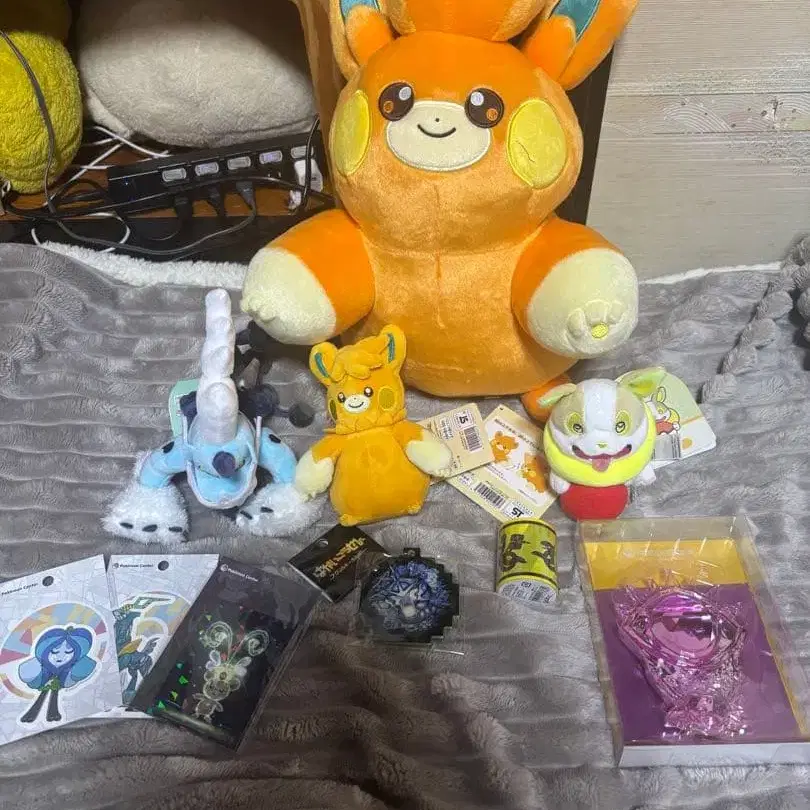 피카피카 박스 2026 안에 들어있던 봉제 인형 + α 입니다. 등신대 포징 봉제 인형 파모 말랑말랑 손바닥 봉제 인형 파르모트 빼꼼 봐봐! 봉제 인형 완파치 봉제 인형 볼트로스 다이컷 반짝반짝 거울 에브이 키링 갸라도스 스티커 3종 보양 테이프 상자에서 꺼낸 것뿐입니다. 저도 빠른 배송을 위해 노력하고 있으니, 상품 도착 후에는 번거로우시겠지만 신속하게 거래 평가 부탁드립니다. 잘 부탁드립니다.(*´ω`*)