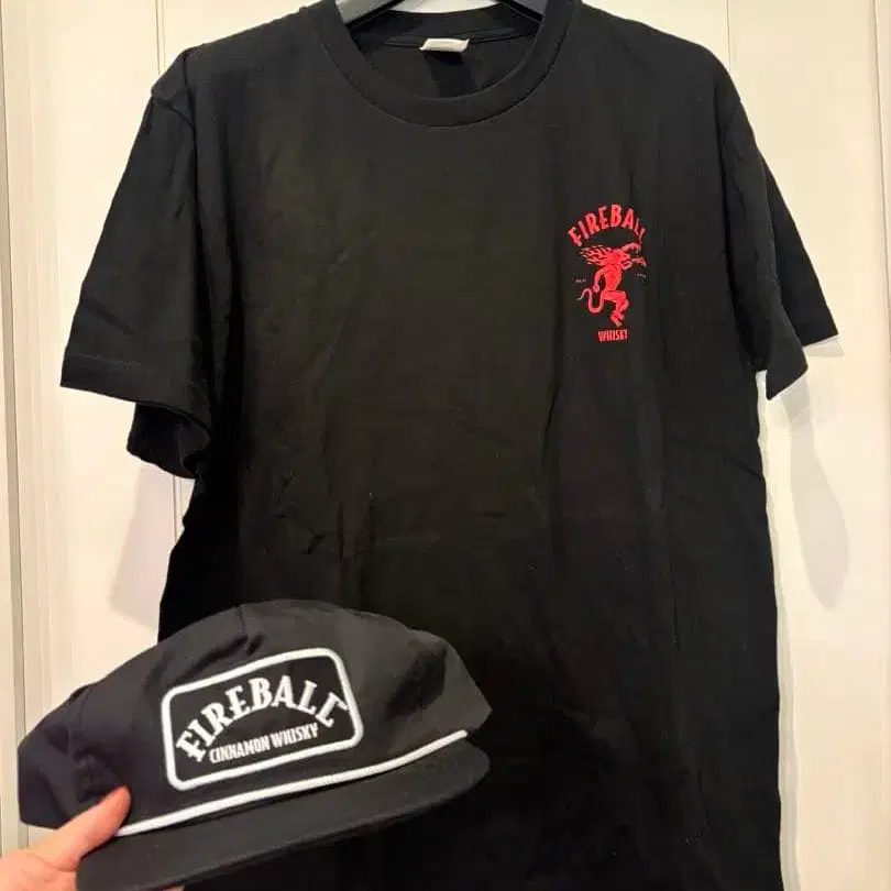 Fireball 파이어볼 위스키 브랜드 티셔츠와 캡 세트입니다. 티셔츠 L 사이즈 기장 약 70cm 겨드랑이에서 겨드랑이 약 52cm 가슴 너비 약 55cm 캡 모자 프리 사이즈 스트릿 패션 FIREBALL 미국 시나몬 위스키 Whisky 굿즈 해외