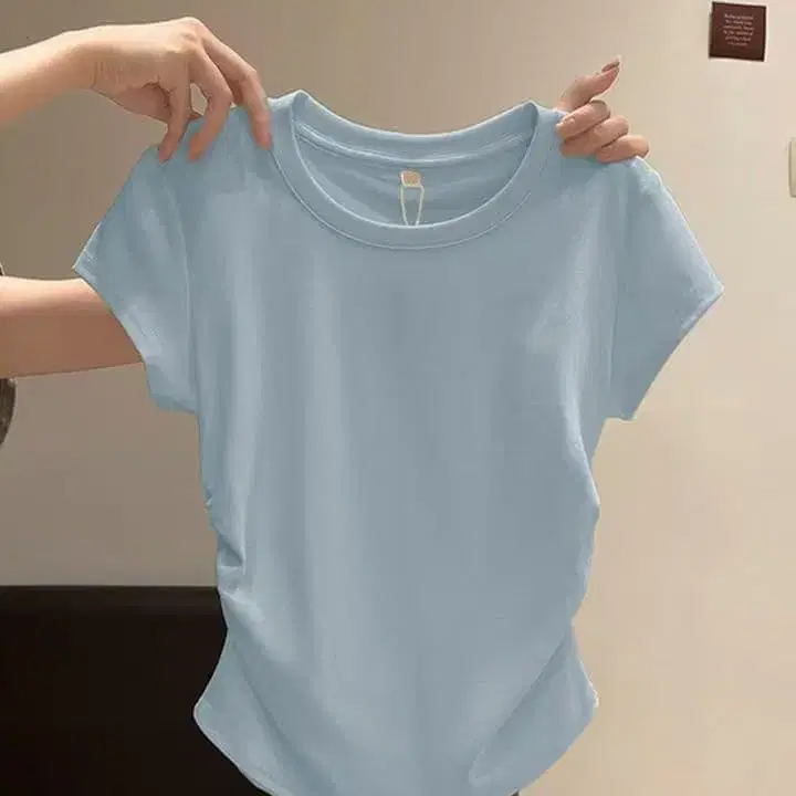 스카이블루와 그레이 색상의 반팔 라운드넥 티셔츠, 코튼 혼방 소재로 쾌적한 착용감. - 색상: 스카이블루 - 색상: 스카이블루 - 색상: 그레이 - 디자인: 라운드넥 - 소매 길이: 반팔 - 소재: 코튼 혼방 방문해 주셔서 감사합니다. 사이즈 - FREE SIZE