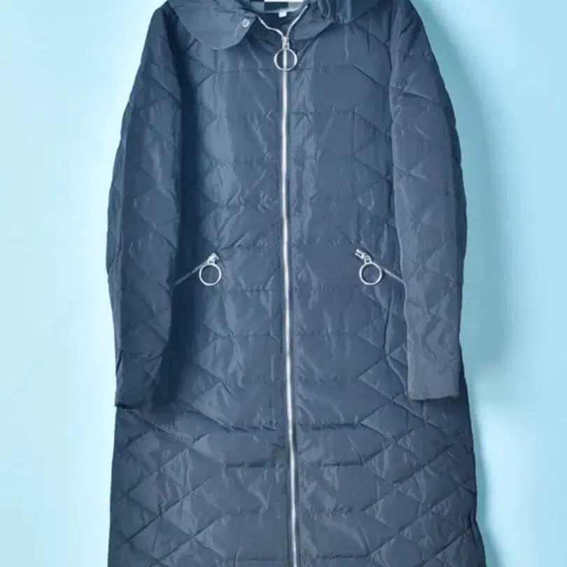 퀼팅 디자인의 다운 자켓, 후드 부착에 링 지퍼가 특징입니다.