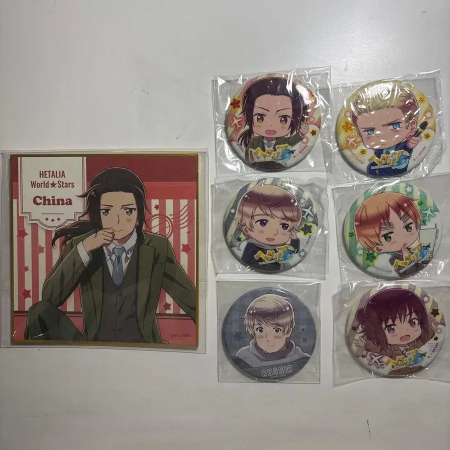헤타리아 World ☆ Stars의 캔뱃지와 색지입니다. 낱개 판매 시 연락 주세요. 희망 가격을 제시해 주시면 감사하겠습니다. 중국 독일 러시아 영국 체코