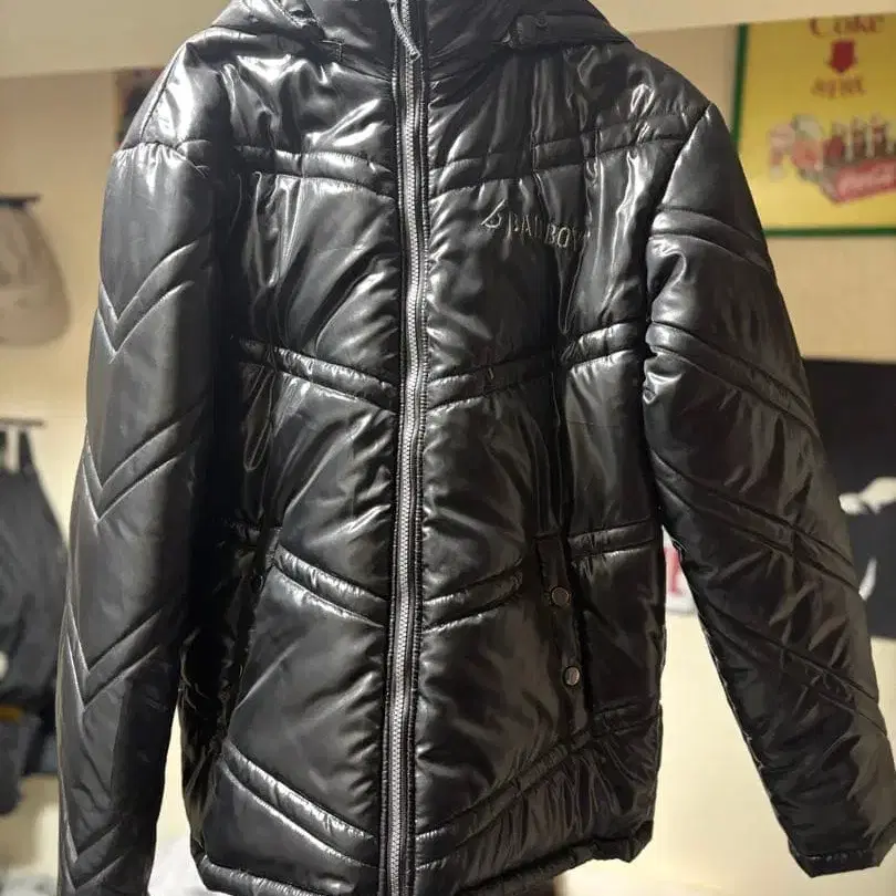퀼팅 디자인의 블랙 다운 자켓, 후드 부착 및 자수 로고 포함. - 브랜드: BAD BOY - 색상: 블랙 - 디자인: 퀼팅 디자인 - 로고: 자수 로고 - 스타일: 후드 부착 (탈부착 가능) 방문해 주셔서 감사합니다. 사이즈 - XL(LL)