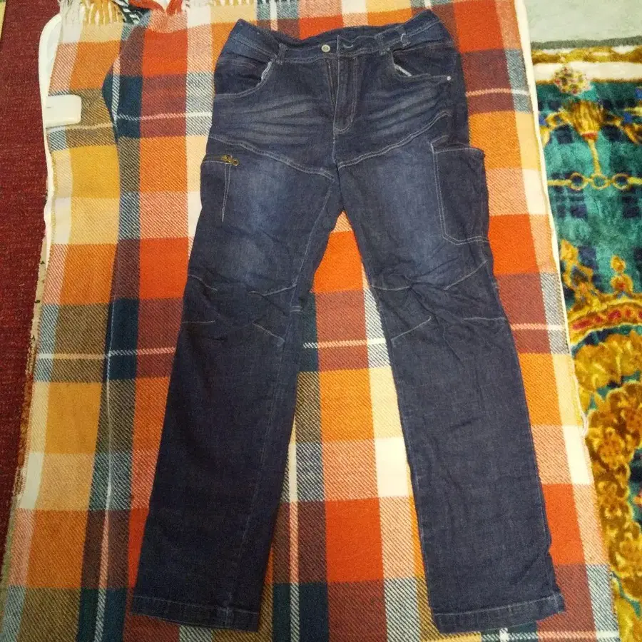 다크 블루 스트레이트 핏 데님, 포켓 부착. - Color: 다크 블루 - Style: 스트레이트 핏 - Material: 데님 - Features: 복수 포켓 - Stitching: 콘트라스트 스티칭 방문해 주셔서 감사합니다.