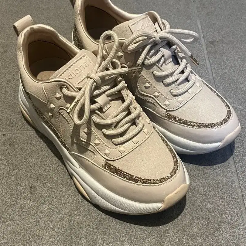 diana 베이지 라메 장식 스니커즈