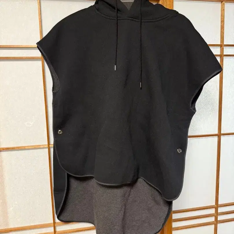 후드 부착 블랙 판초, 맨투맨 소재로 쾌적한 착용감. - 색상: 블랙 - 디자인: 후드 부착, 판초 스타일 - 소재: 맨투맨 원단 - 디테일: 밑단에 버튼 부착 - 가격: 14,000엔 방문해 주셔서 감사합니다. 사이즈 - M 컬러 - 블랙 계열 미사용 새상품이지만, 개인 보관으로 인해 이해해 주시는 분만 구매 부탁드립니다.