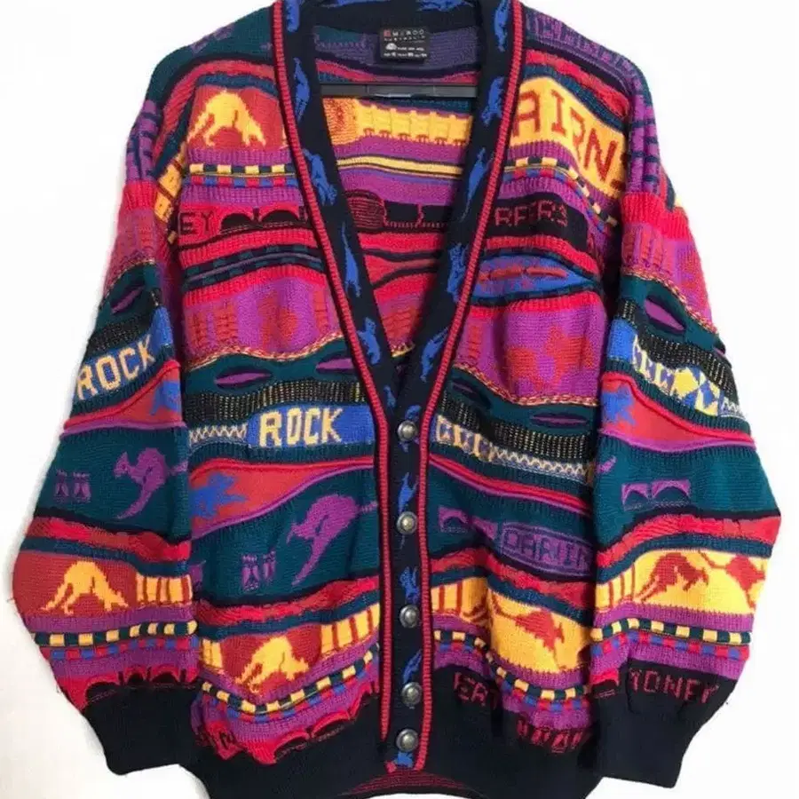 EMAROO 에마루 울 올 패턴 3D 니트 가디건 COOGI 스타일