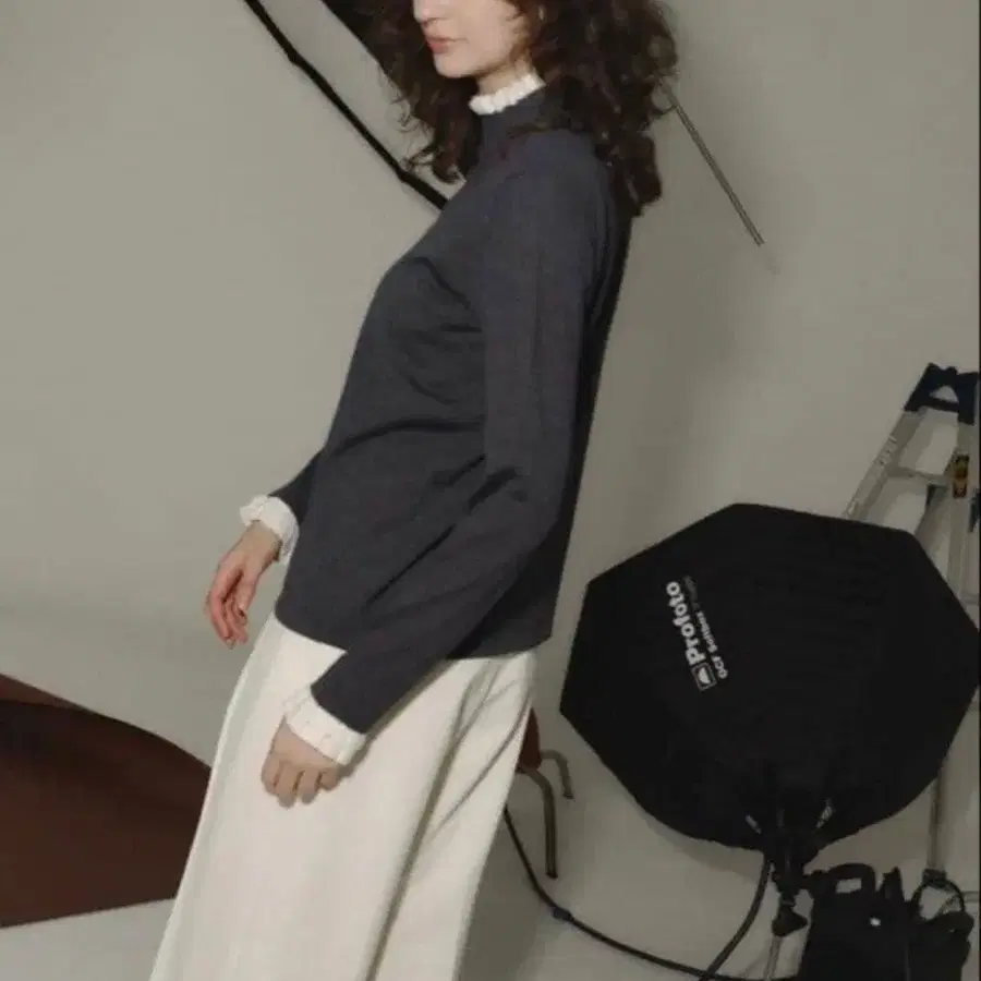 택 포함 OHGA 바이컬러 프릴 니트