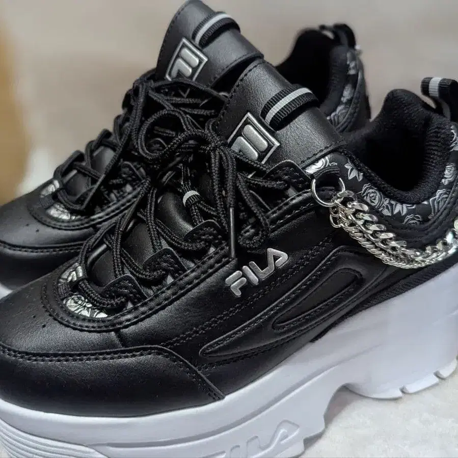 FILA 캐주얼 통굽 스니커즈 체인 포함 블랙 24cm