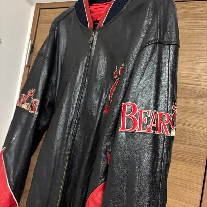 Cincinnati Bearcats의 가죽 아우터, 프론트 지퍼와 리브 옷깃이 달린 스타일리시한 디자인. - 브랜드: Cincinnati Bearcats - 색상: 블랙/레드 - 소재: 가죽 - 디자인: 프론트 지퍼, 리브 옷깃, 로고 자수 방문해 주셔서 감사합니다. 사이즈 - L
