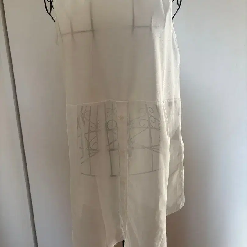 YORT의 슬리브리스 상의입니다. 위쪽은 티셔츠 원단, 아래쪽은 부드러운 원단입니다. 버튼은 디자인용이므로 열리지 않습니다. 비치므로 이너 착용이 필수입니다. 네코포스로 발송 예정입니다. 색상 - 화이트 계열 패턴/디자인 - 무지 계절 - 봄/여름 얼룩, 찢김, 냄새 등 - 없음