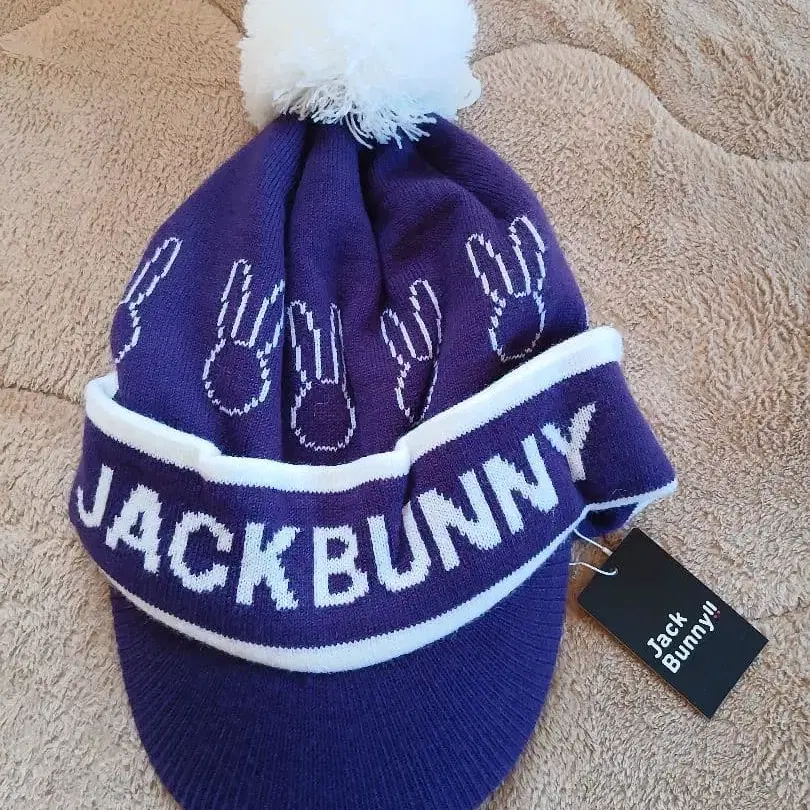 JACKBUNNY 골프 보라색 니트 모자 폼폼 포함 미사용 새상품