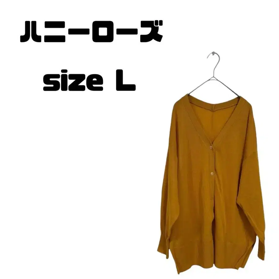 [ 상품번호 ] 25d482 ⸻ ■ 브랜드명 HONEY ROSE ( 허니 로즈 ) ■ 색상 머스타드 ( 노란 기가 강한 황토색 계열 ) ■ 사이즈 표기 사이즈: L 평평하게 놓았을 때 실측 ( 약 ): 기장 약 63 cm 어깨 너비 약 56 cm 가슴 너비 약 61 cm 소매 길이 약 44 cm 성별 ( 예상 ): 여성용 ⸻ [ 상품 설명 ] HONEY ROSE의 V넥 가디건입니다. 가을/겨울에 어울리는 머스타드 색상으로, 얼굴을 밝게 보이게 하는 아이템입니다. 넉넉한 사이즈감 ( 가슴 너비 61 cm )으로, 이너를 겹쳐 입어도 쾌적합니다. 프론트 오픈 버튼 사양으로, 가볍게 겉옷처럼 걸쳐도 분위기를 낼 수 있는 디자인입니다. 소재는 아크릴 100%로 가정 세탁에도 대응하기 쉬우며, 다루기 쉬운 니트입니다. ⸻ [ 상태 ] 상태: 흠집 및 얼룩 없음 원단 두께: 얇은 소재 신축성: 있음 ⸻ 약간의 측정 오차는 양해 부탁드립니다. 소재는 사진을 참고 부탁드립니다. 궁금한 점은 언제든지 질문해주세요. 모니터에 따라 색상에 차이가 있을 수 있습니다. 보관 및 배송 시 발생하는 주름은 양해 부탁드립니다. 이는 구제 의류이며 개인 보관품입니다. 확인은 사람이 직접 하므로 작은 흠집 아주 약간의 올풀림 조금의 얼룩 등 놓친 부분이 있을 수 있습니다. 양해 부탁드립니다. 댓글을 남겨주신 시간대에 따라 바로 답장드리지 못할 수도 있지만, 최대한 빨리 답장드리겠습니다 ♪ 기분 좋은 거래가 될 수 있도록 노력하겠습니다 ☆ 멋진 옷과의 만남이 있기를 바랍니다 ♪ #마이 ☆ 의 옷 상품 목록은 여기 ↑