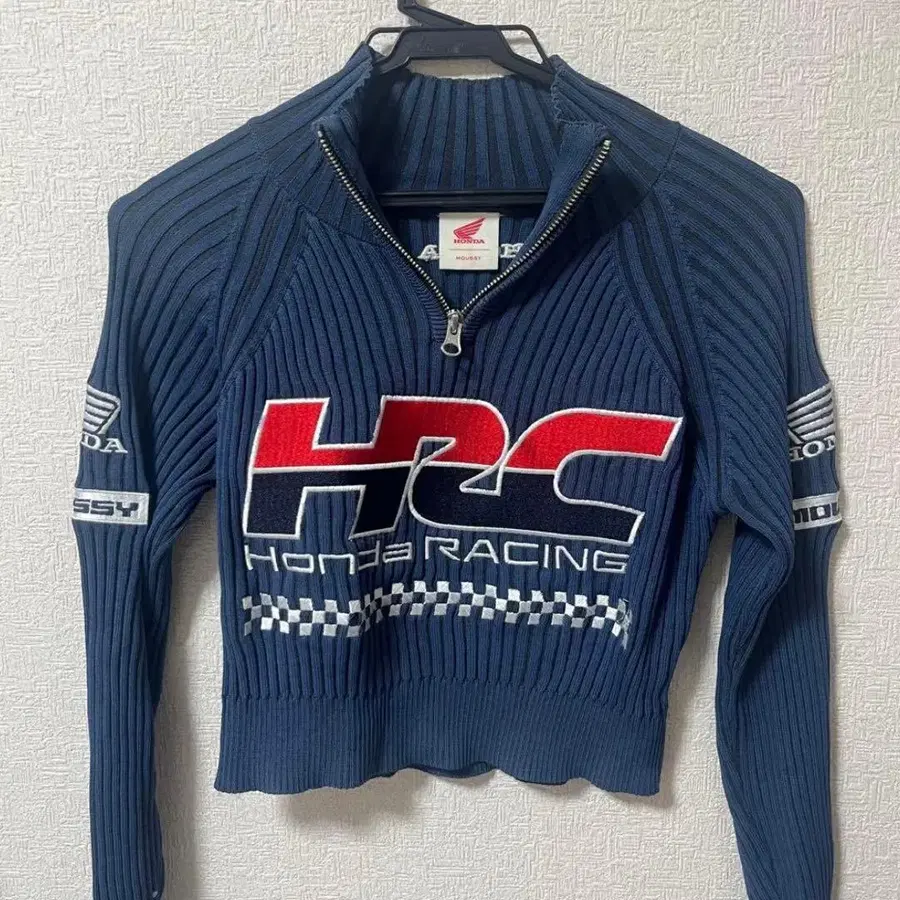 moussy x HONDA 콜라보 - 디자인: 리브 - 색상: 네이비 - 특징: 하이넥, 지퍼 포함 - 자수: HRC, HONDA, MOUSSY - 소매 디자인: 스트라이프 - 스타일: 크롭 기장 방문해 주셔서 감사합니다. 궁금한 점이 있으시면 언제든지 편하게 문의해 주세요.