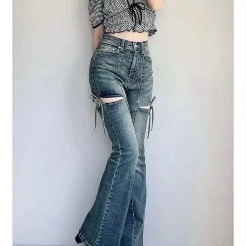 부츠컷 데님 데미지 진 [0] y2k 헤이세이 패션 로우라이즈